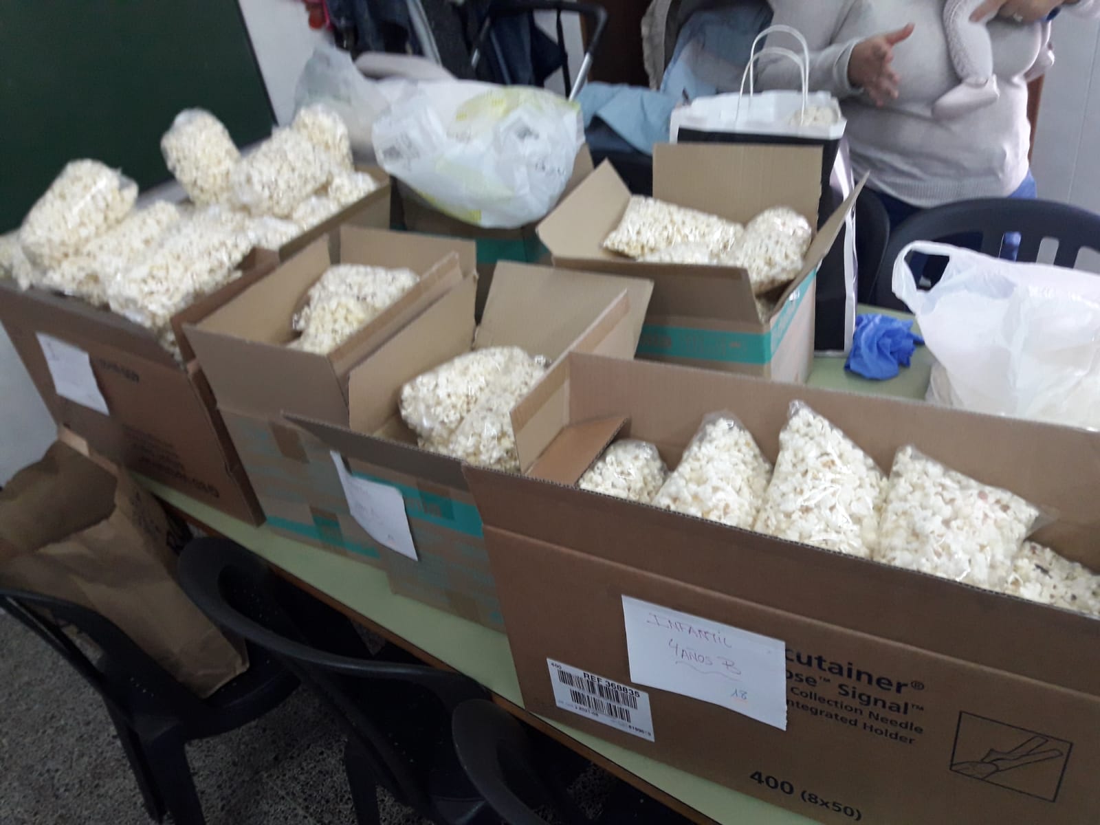 El mes de octubre, como cada año en el colegio, se ha vivido bajo la luz que desprende el servicio y entrega de los misioneros y misioneras que están repartidos por todos los continentes. Ellos nos recuerdan, que hay que comunicar una Buena Noticia, la de Jesús. Y que junto con Él, estamos llamados a «CAMBIAR EL MUNDO». Un cambio es posible, así nos lo testifican los misioneros que se encuentran en lugares muy pobres y necesitados. Con su entrega, como Jesús, provocan la transformación en el mundo con sus vidas y obras. Por ello, toda la comunidad educativa se siente llamada y comprometida a colaborar con esta gran misión de la Iglesia. Entre otras actividades, el 26 de octubre, se llevó a cabo la venta solidaria de las popularmente llamadas «palomitas misioneras» donadas y elaboradas por alumnos de Secundaria y madres voluntarias del equipo de pastoral familiar del colegio. Por un día, el centro escolar, se aromatizó con un olor a maíz y ricas palomitas, labor compartida con alegría que nos hace sentirnos «corazón» con aquellos que más nos necesitan. ¡Gracias por vuestra generosidad!