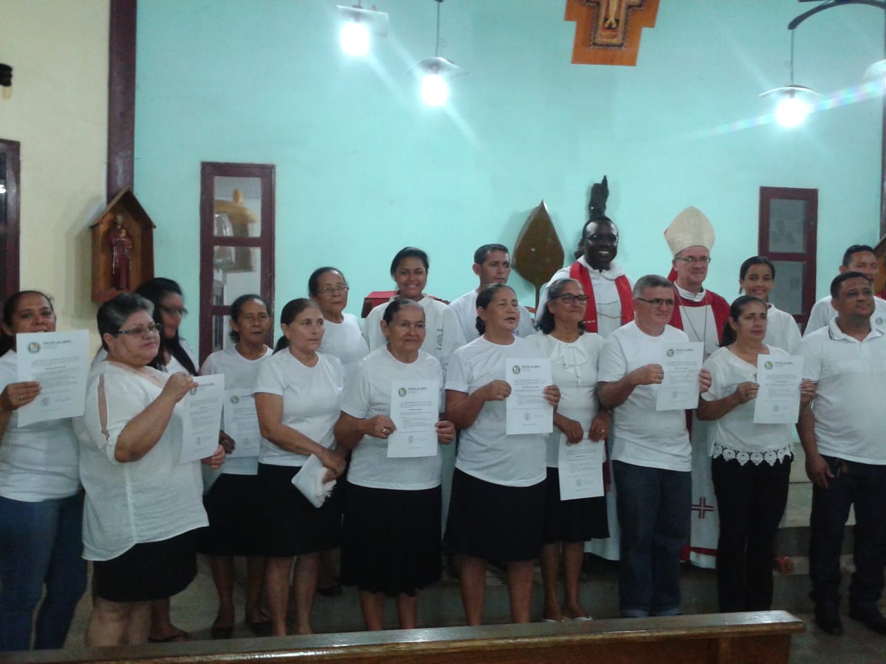 Rica experiência em que nos envolvemos em quase todas as atividades, tanto litúrgicas como missionárias. Espirito que soprou forte y arrebatou-nos com os jovens crismados e todos os missionários leigos, religiosos e sacerdotes que foram enviados quando chegamos. Recebemos nosso quite missionário e caminhamos as ruas da cidade como Igreja em saída. Sentimos não estar no encerramento, mais voltamos com nova vida depois de comer o Pão e beber o Sangue no dia do Corpus.